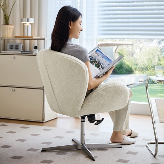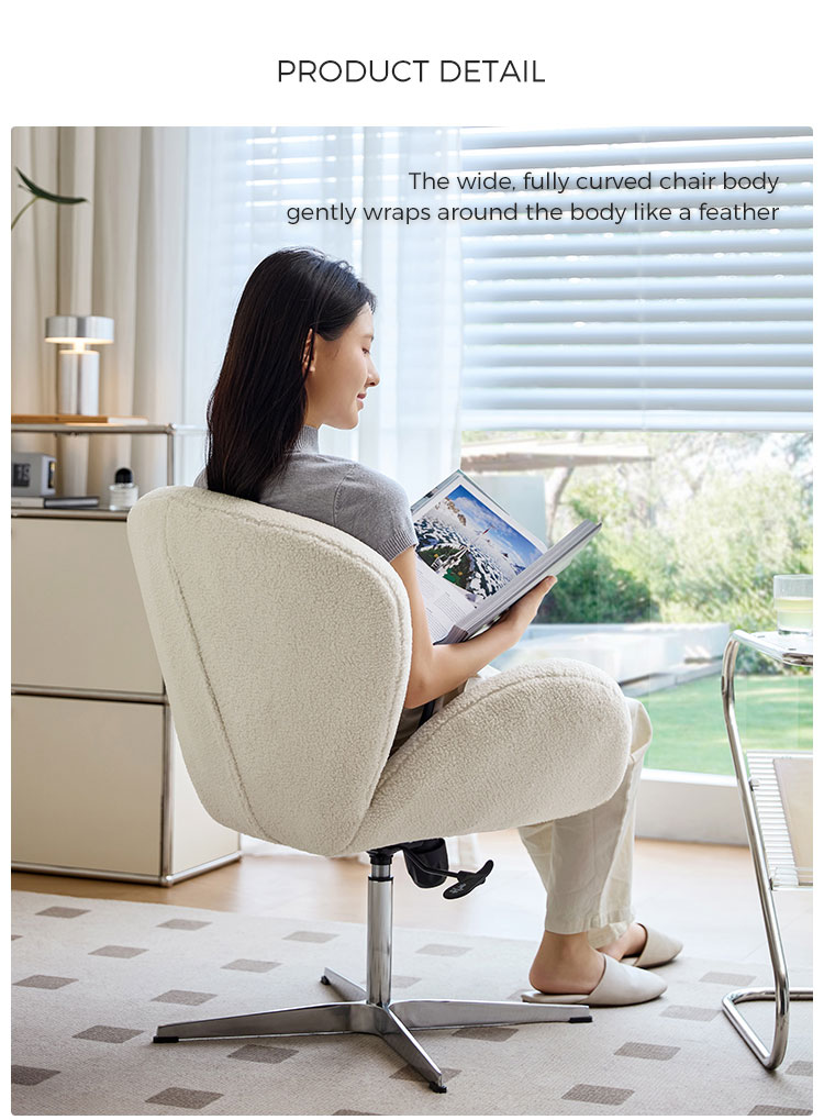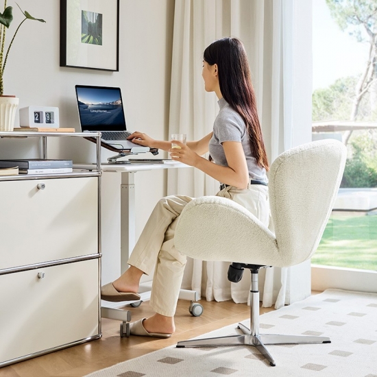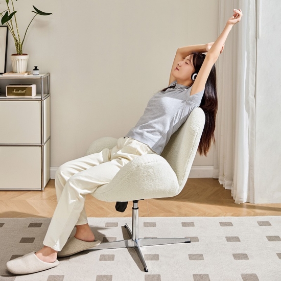 مصنوع من قماش أبيض عالي الجودة، يتميز بمظهر أنيق وأنيق، كما أنه سهل التنظيف للغاية. يوفر تصميمه المريح دعمًا أساسيًا لأسفل الظهر، ويعزز وضعية جلوس صحية، مما يجعل ساعات العمل الطويلة على مكتبك أكثر راحة بشكل ملحوظ.