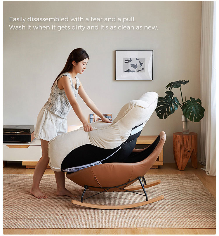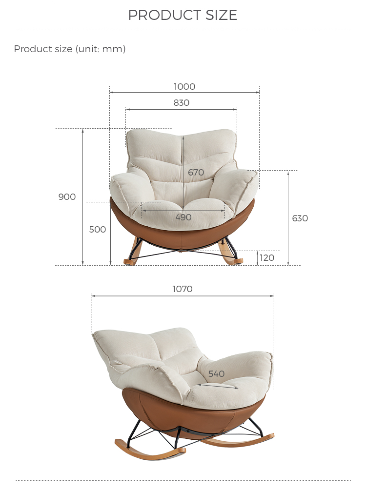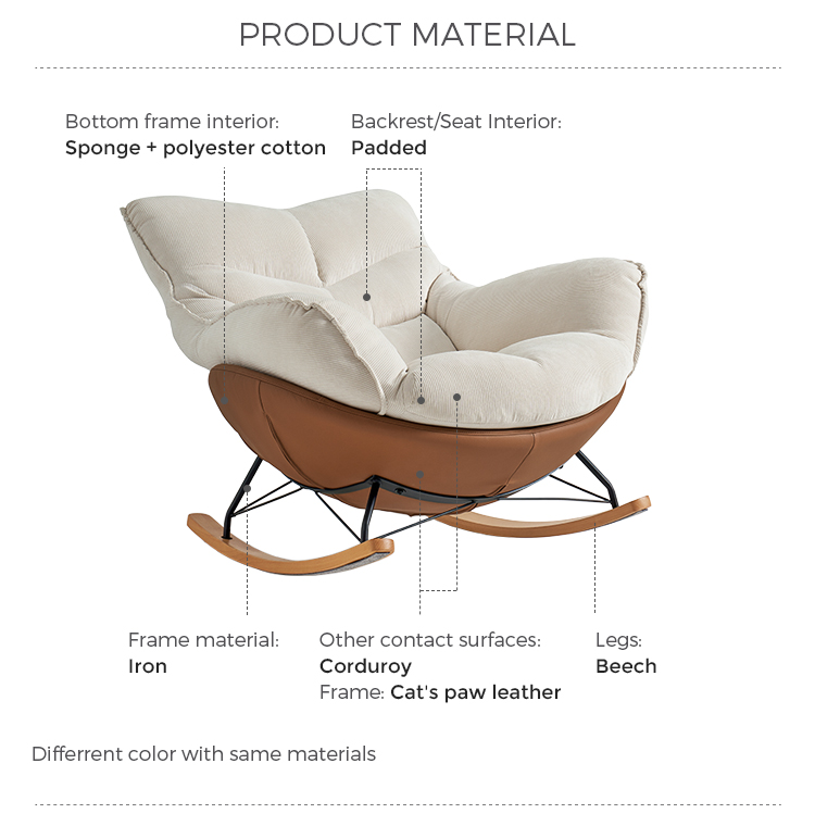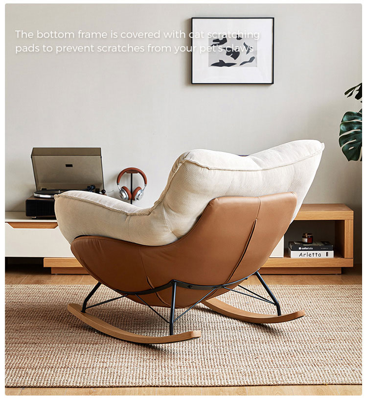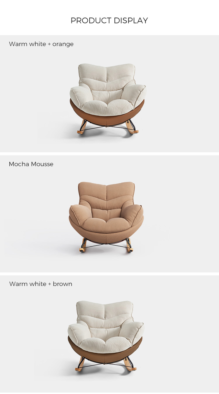 2. حركة تأرجح سلسة: تم تصميم الكرسي على قاعدة قوية مع قوس مستقر، ويوفر حركة تأرجح لطيفة وسلسة مثالية للتهدئة والاسترخاء بعد يوم طويل.