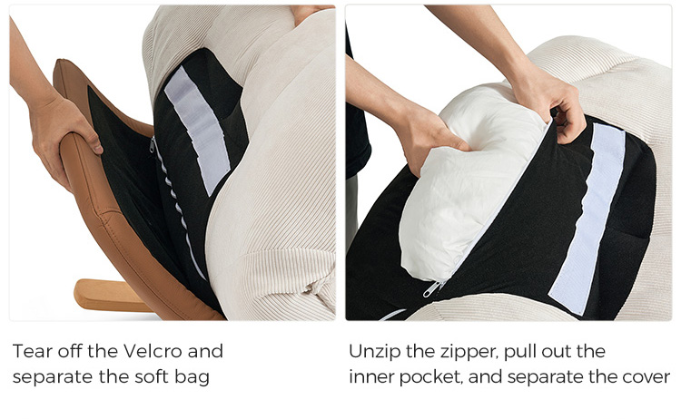 ١. وسادة قابلة للإزالة: وسادة المقعد السميكة والمريحة قابلة للإزالة بالكامل. استخدمها لراحة ناعمة ومبطنة على قاعدة الكرسي الهزاز، أو أزلها لاستخدامها كمقعد أرضي متعدد الاستخدامات أو مسند قدم، لتوفر لك قطعتي أثاث في قطعة واحدة.